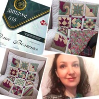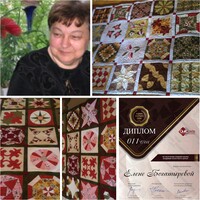 "Здравствуйте сокурсники! Я , Богатырёва Елена Анатольевна, живу в Москве, Увлекаюсь лоскутным шитьем лет восемь, шью и одеяла, и сумки, и юбки и, украшения. Вырастив своих детей, я обрела свободу в своих желаниях. Любопытство заставило меня учиться не только по интернету и книгам, но и обрести систематические знания. Обучаясь в Академии я нашла ответы на многие мои вопросы или сомнения. Мне интересны новые приемы, техники. С удовольствием смотрю что делают сокурсники, есть новые идеи и планы за которые я теперь могу смело взяться. В принципе я и не очень боюсь ошибок, ведь шью я для своих любимых детей, внуков, родных и близких мне людей. Уже много пропагандирую наше лоскутное увлечение. продажей своих работ не занимаюсь,просто дарю. Во время учебы я сшила два детских и два взрослых одеяла, так как я шью сразу по два, а то и три образца в разных цветовых решениях, мне интересно сочетание цветов.